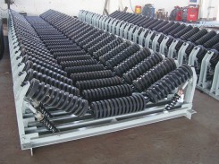 槽型托輥有普通型托輥、前傾型托輥、快換軸承型托輥、吊掛型托輥、三鏈托輥、可逆托輥、變槽角型托輥、過渡型托輥、V型托輥等類型。廣泛用于露天粉塵較大,腐蝕性高的環境中、如礦山、電廠、鋼廠、石料廠、水泥廠、洗煤廠、鹽廠、堿廠、化肥廠、碼頭等所有運送場所。